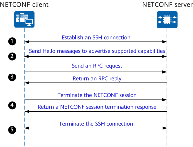 • When receiving a request from a NETCONF client, the NETCONF server parses the request and sends a reply to the client.