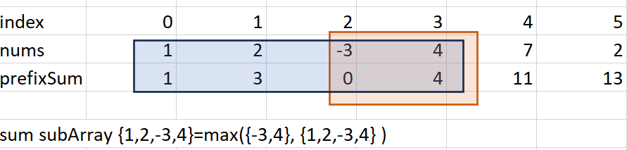 . We compare the sum between subarray {-3,4} and subarray {1,2,-3,4}