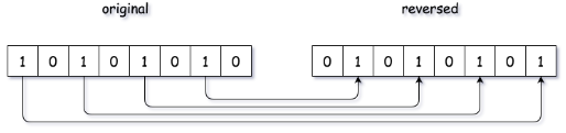 The problem reverse bit asks to change the bits from left to right and vice versa. Note, it is not the same as inverting bits. The following illustrates expectation: